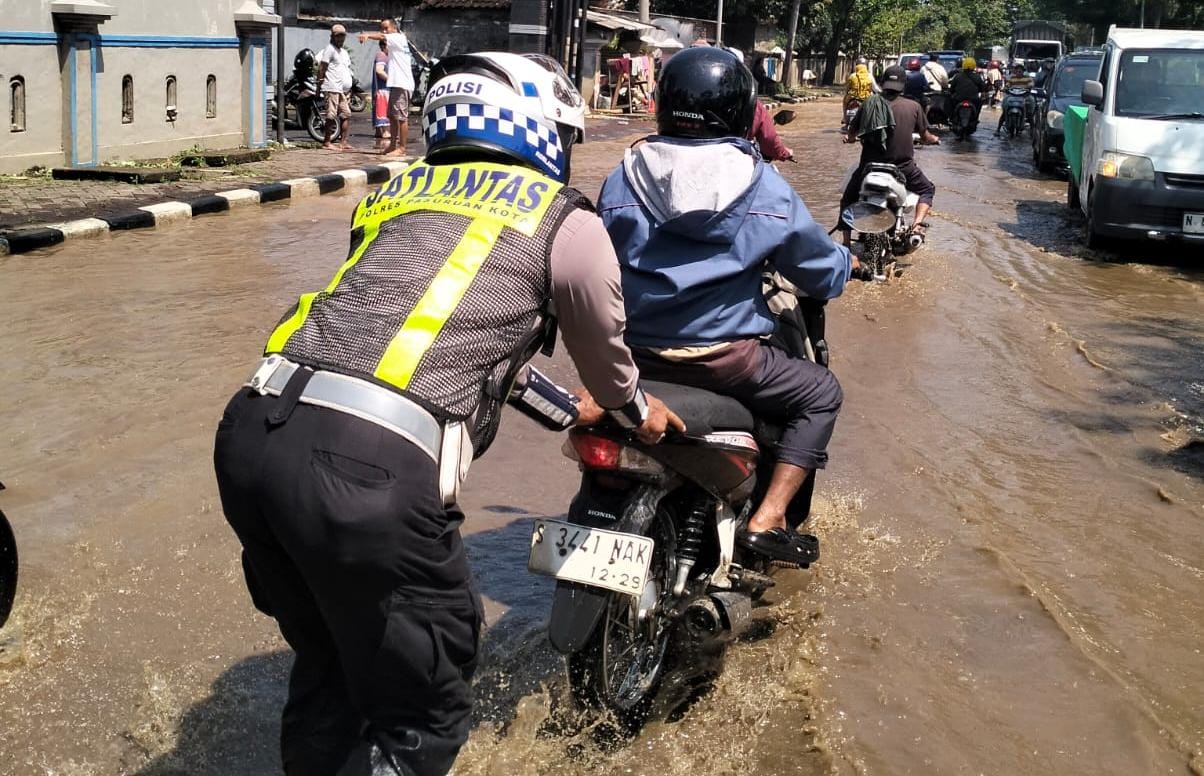 Di lokasi tersebut, personel kepolisian tampak sigap melakukan pengaturan arus lalu lintas guna mencegah terjadinya kemacetan dan kecelakaan lalu lintas. Petugas juga menerapkan sistem buka tutup jalur pada titik genangan air yang cukup tinggi.